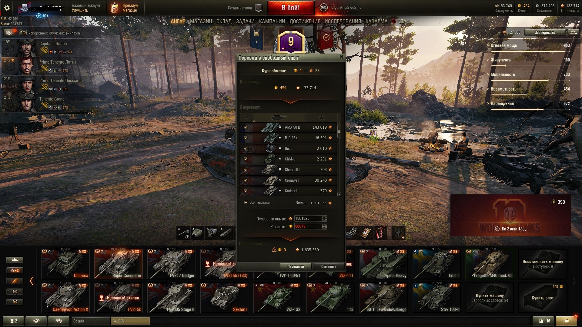 ⭐Свободного опыта: 133 714