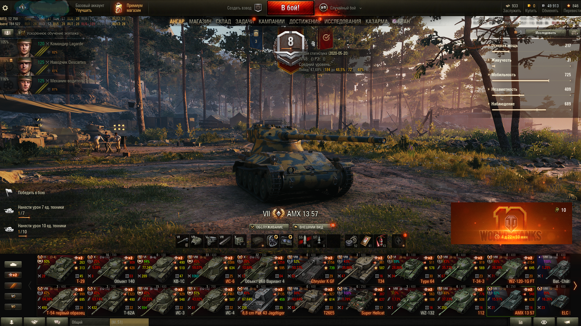 ❌Премы: СУ-122-44, T-50-2, 8,8 cm PaK 43 JagdTiger, E-25, T28 Concept, Super Hellcat, AMX 50 Foch (155), AMX Chasseur de chars, T-34-3, Type 64